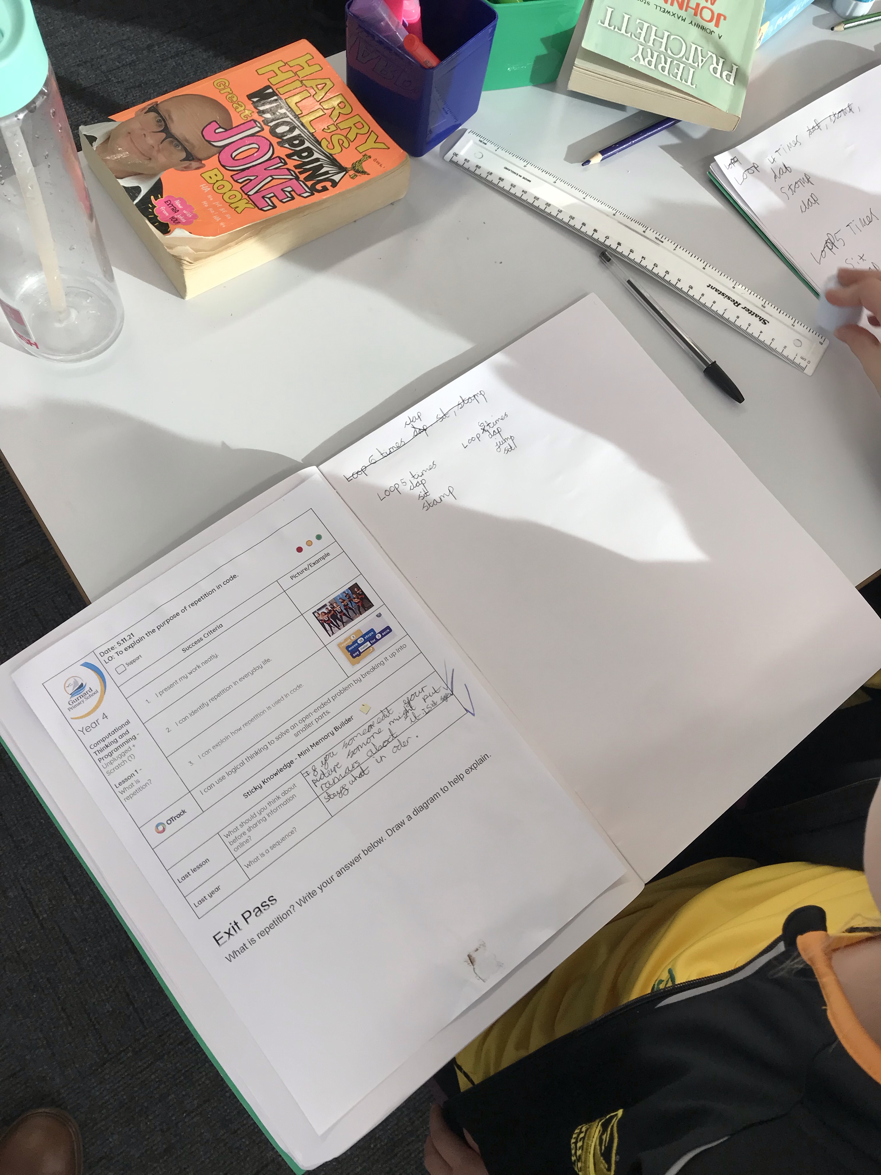 In today’s lesson, Year 4 explored repetition. Repetition is an important programming concept and is used to make sections of code repeat. We were introduced to the term ‘loop’ and wrote our own practical loops to act out. We really enjoyed designing our own algorithms and next week we will see how repetition is used in Scratch.