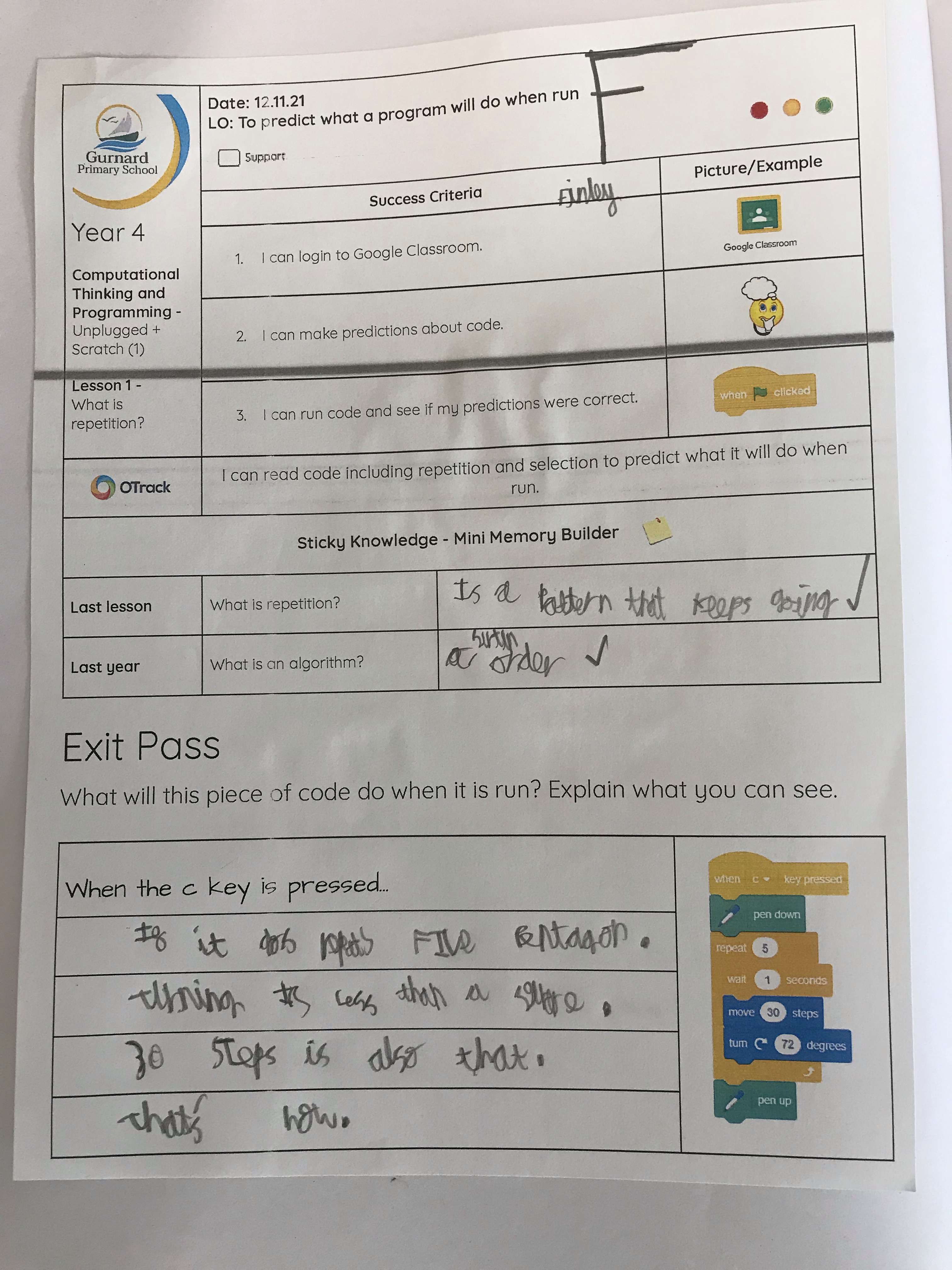 In today’s computing lesson we have been consolidating our learning about repetition. We started the lesson by learning how to login to Google Classroom on the laptops and Chromebooks, and thought about how this is different to logging in with the iPads. Once we had logged in we had to use our prediction skills to try and guess what pieces of code would do when run. We are looking forward to exploring this more next week.