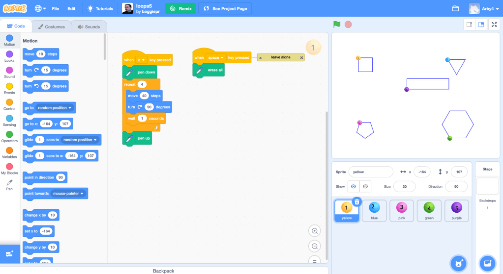 In today’s computing, Year 4 experimented with changing code. They were asked a series of questions on Google Classroom and had to answer these by first modifying the code of a program in Scratch. They used their understanding of repetition to find the parts of the code that needed changing and explored the effect that these changes had on the shapes being drawn.
