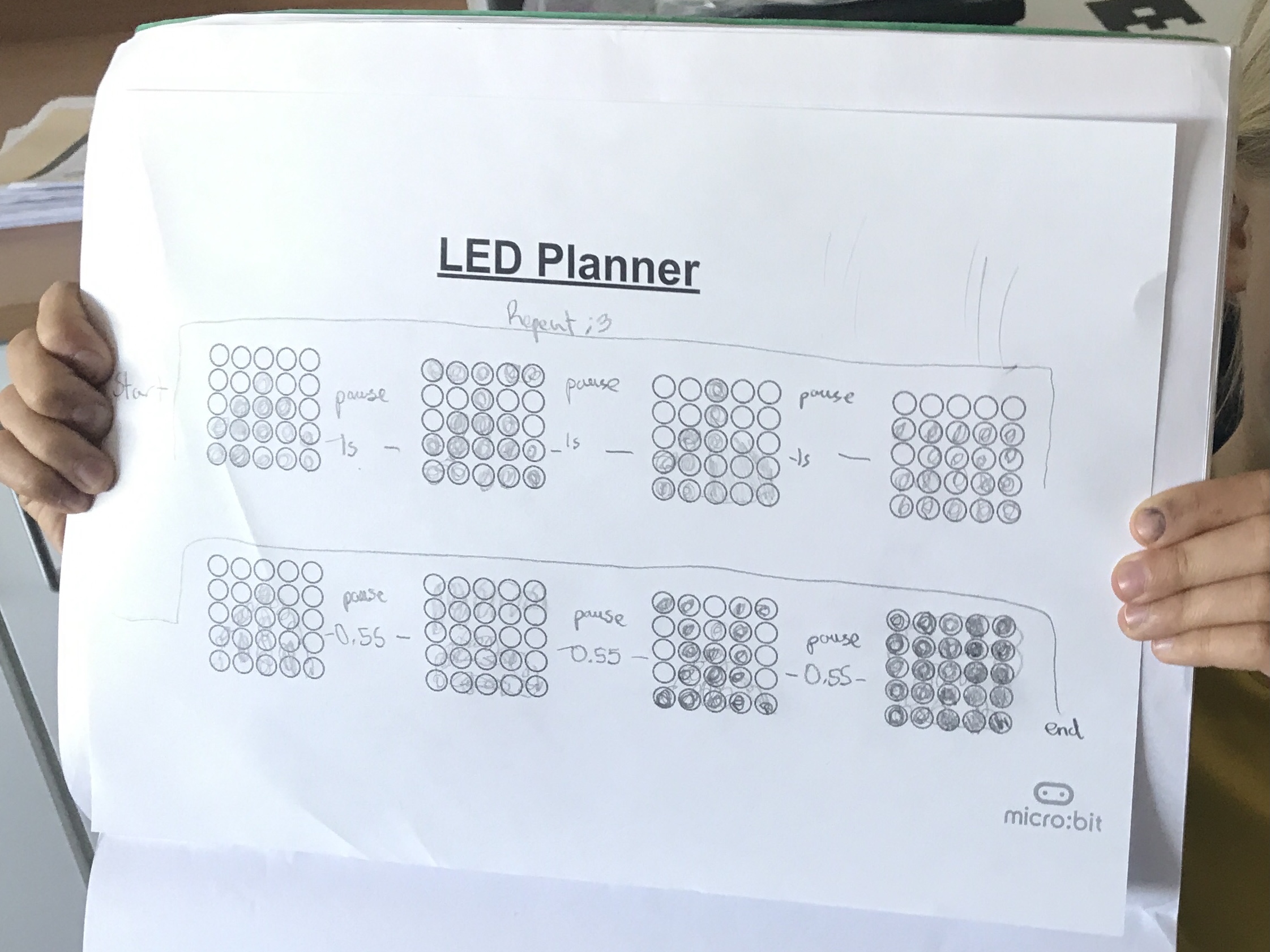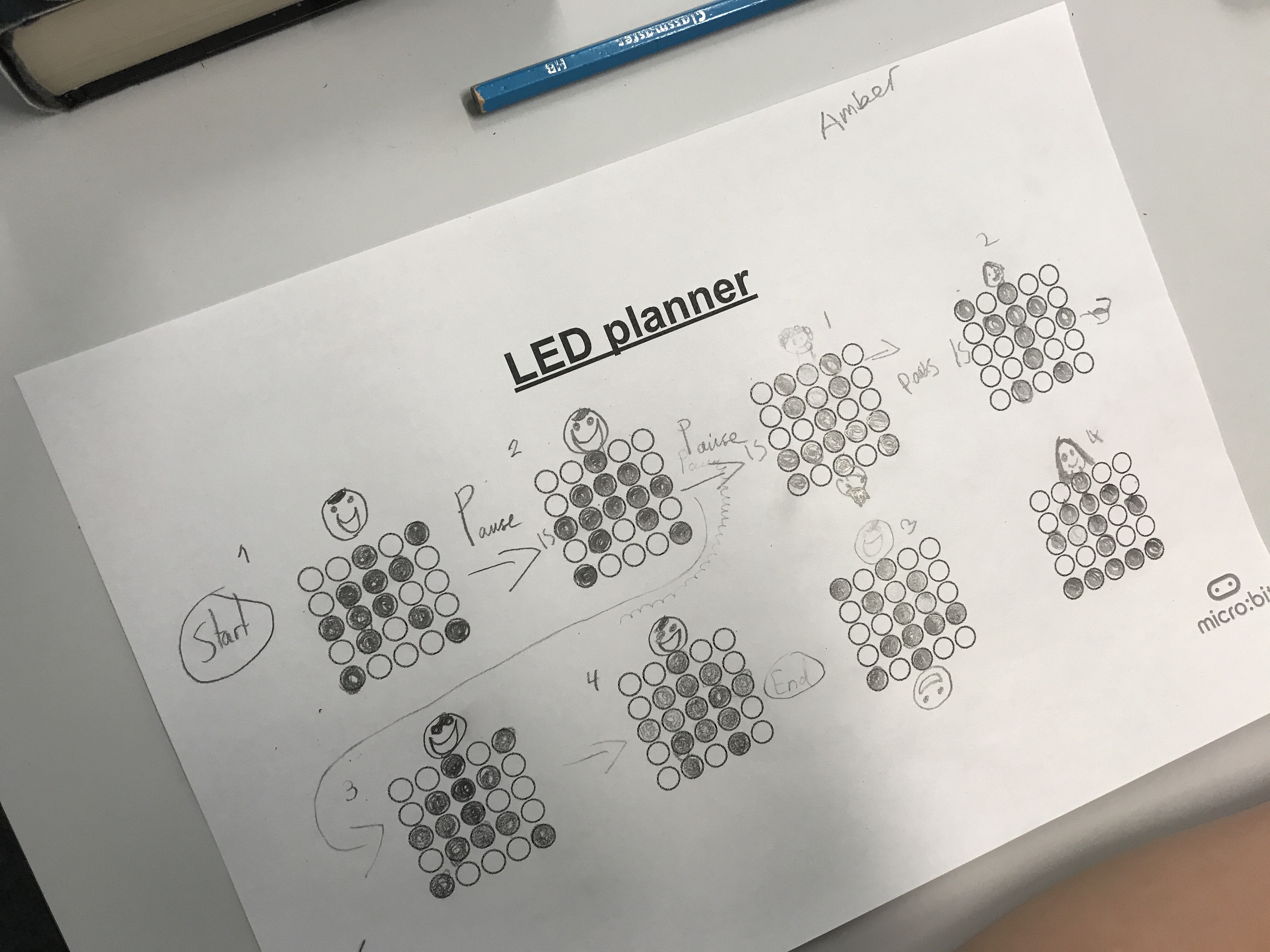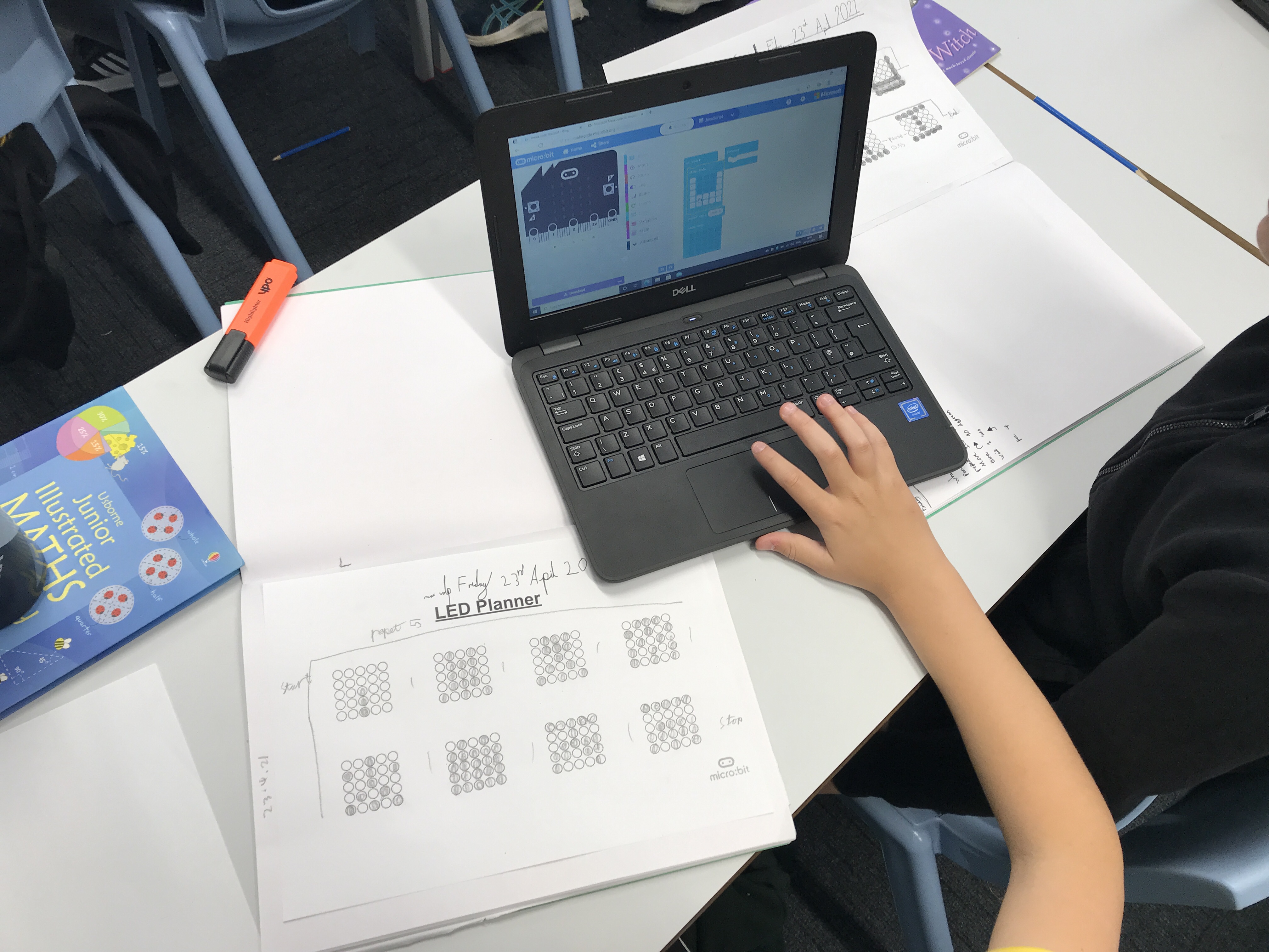 Today we began our unit on animation using code. We will be using the BBC Micro:Bit to physically show our creations on the LED display. In this lesson, we were introduced to the Micro:Bit and explored the software that we will be using to program the device. We modelled a ‘dance’ on paper and then turned our pictures into an algorithm. These algorithms were then used to program using the Make Code editor on the laptops.