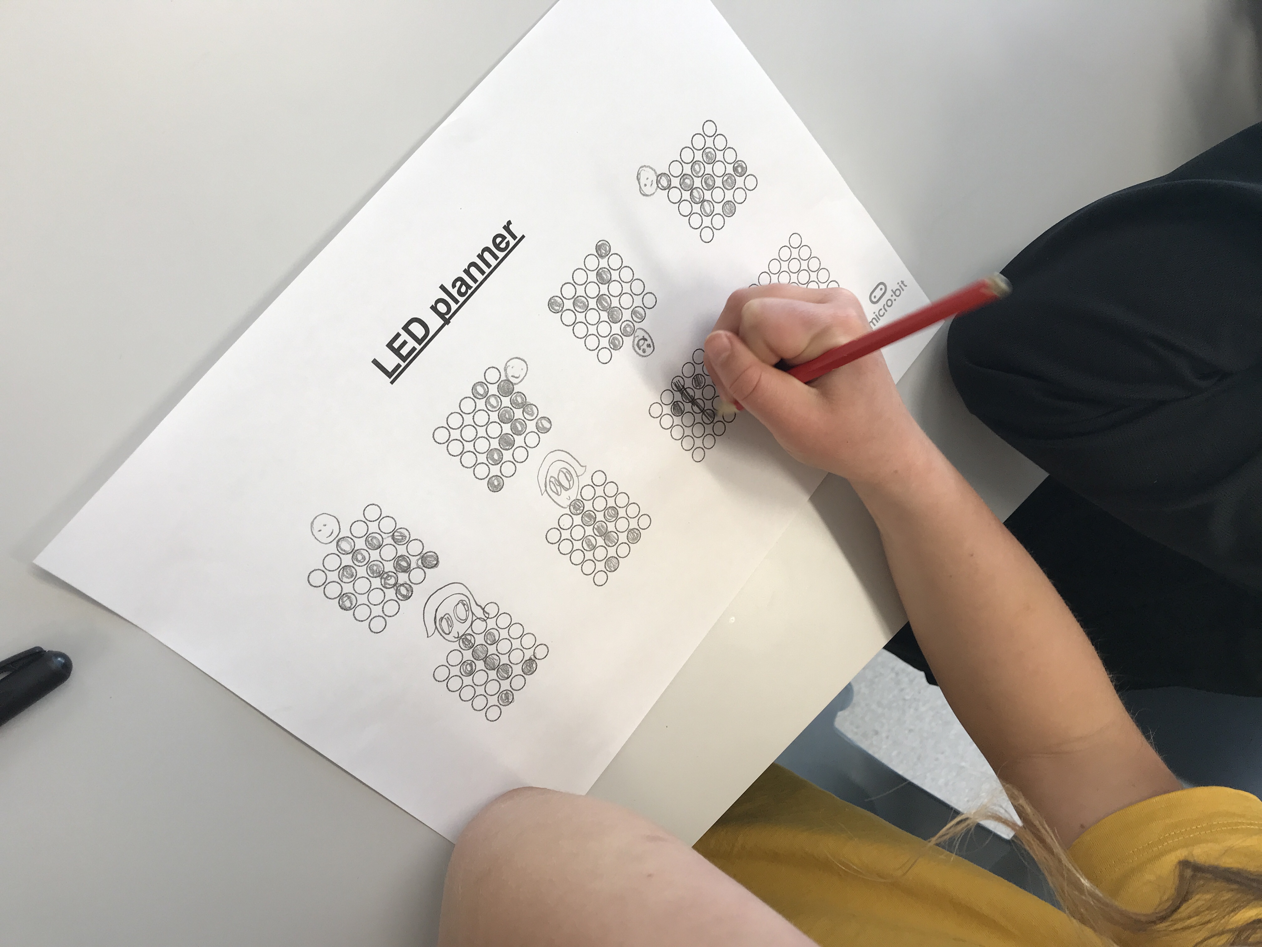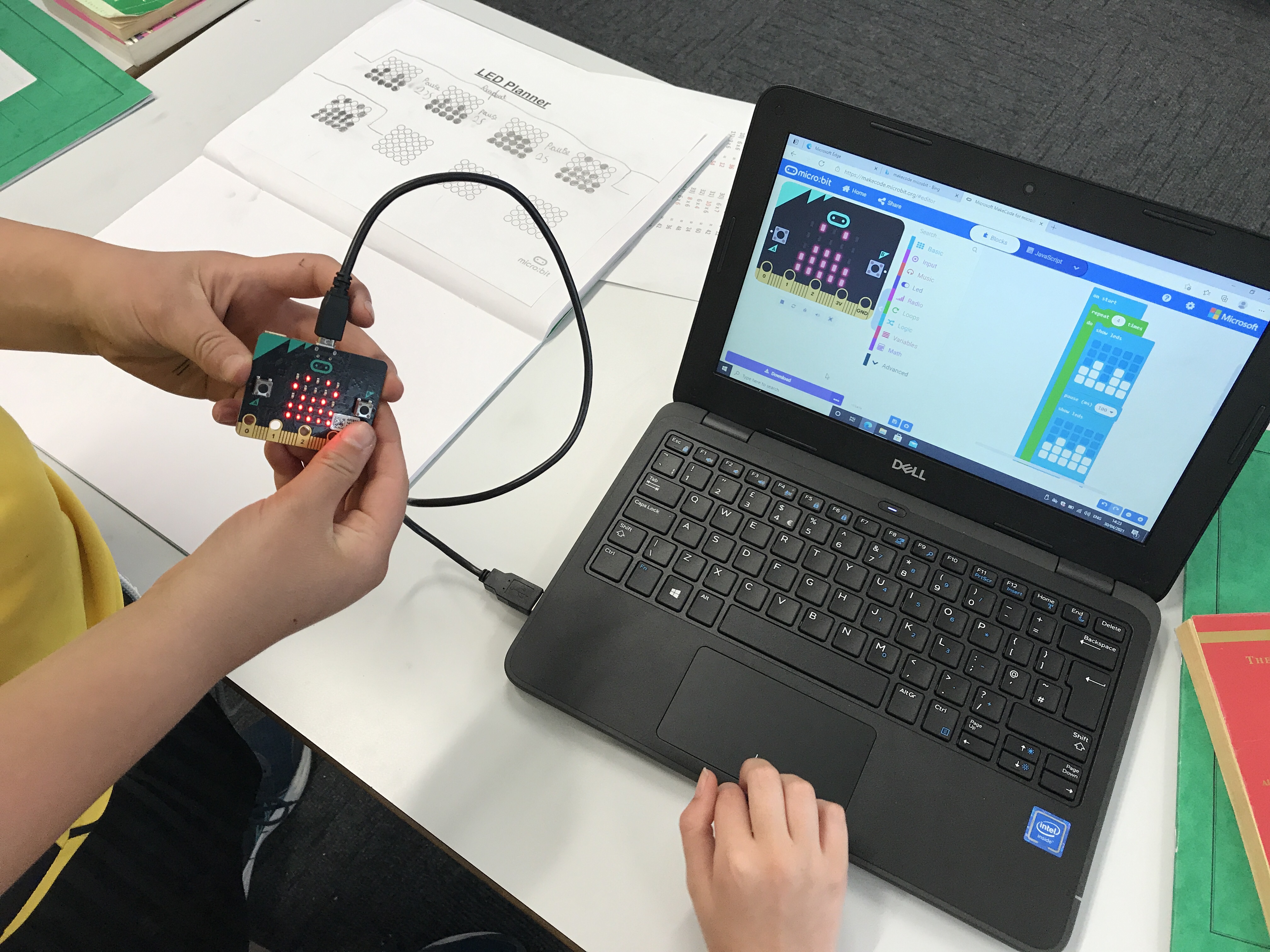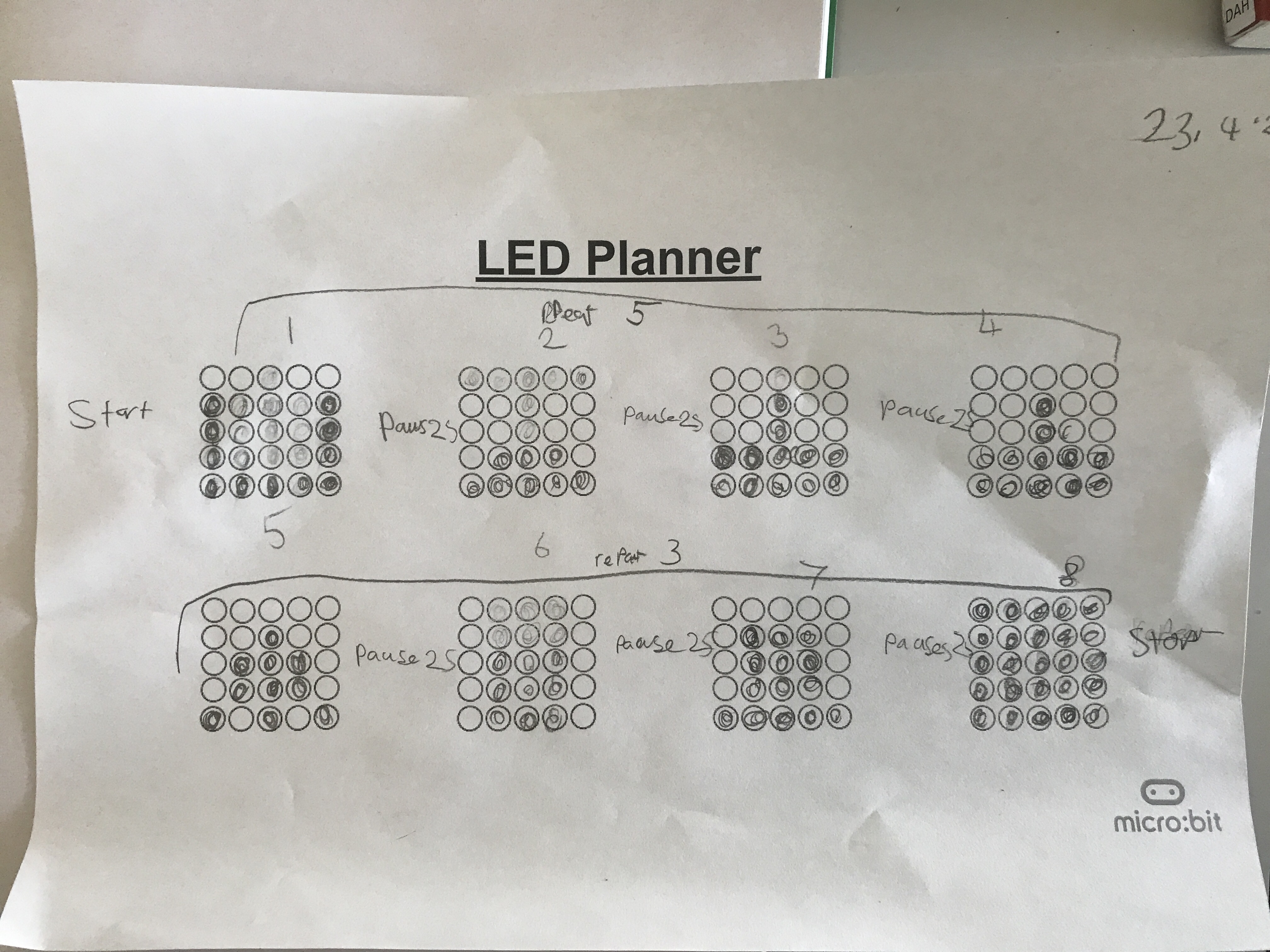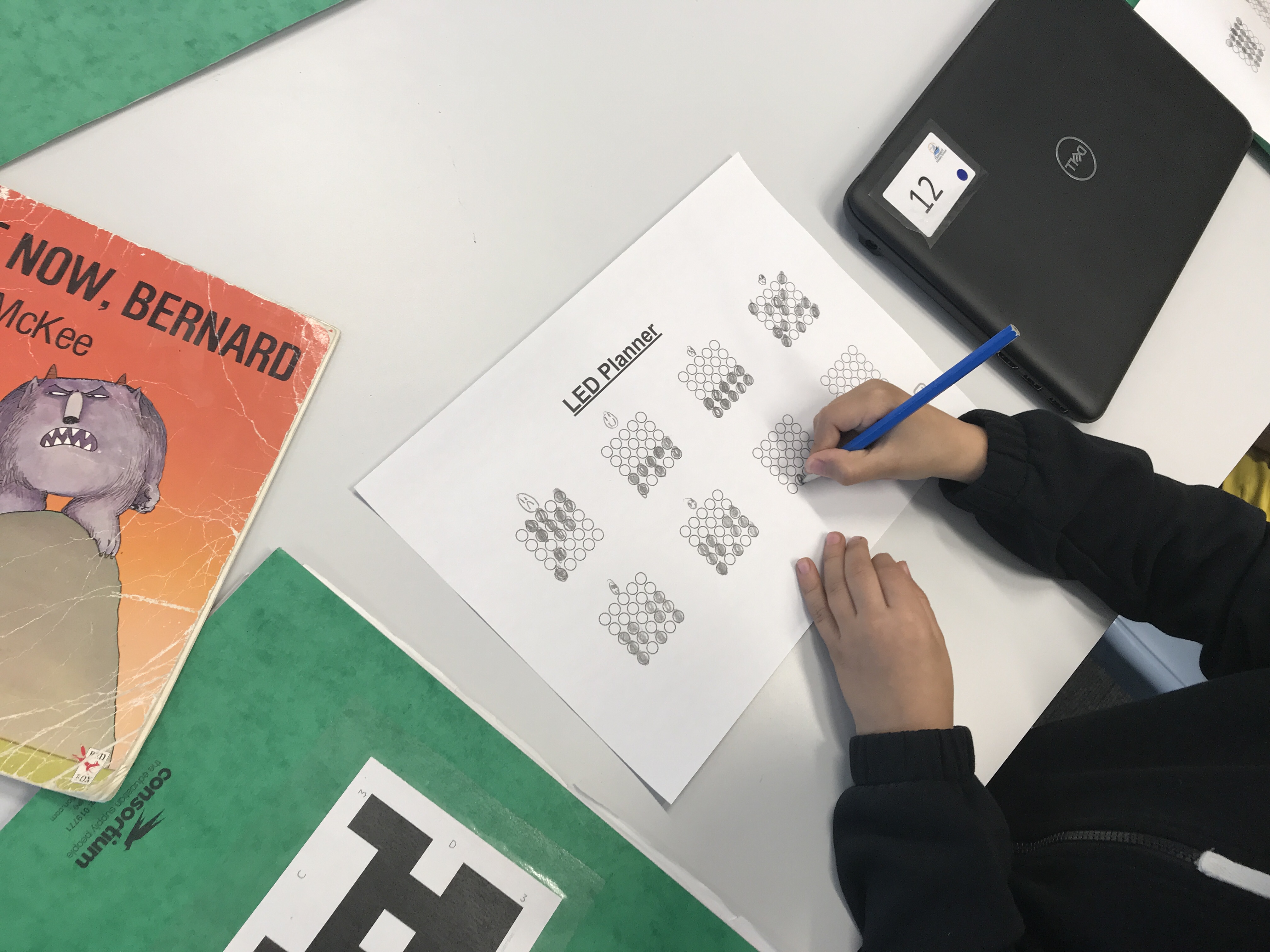 Today we began our unit on animation using code. We will be using the BBC Micro:Bit to physically show our creations on the LED display. In this lesson, we were introduced to the Micro:Bit and explored the software that we will be using to program the device. We modelled a ‘dance’ on paper and then turned our pictures into an algorithm. These algorithms were then used to program using the Make Code editor on the laptops.
